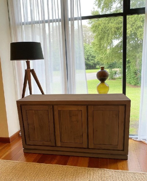 The Ashton Teak Sideboard, 1.5m features 3 doors, offering ample storage for dining essentials or décor.