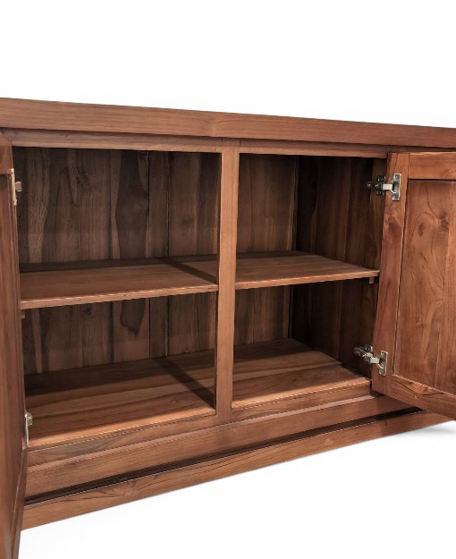 The Ashton Teak Sideboard (2m) offers 4 doors for generous storage, combining practicality with elegance.