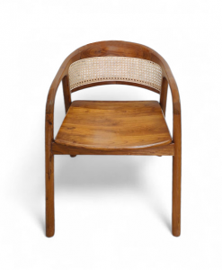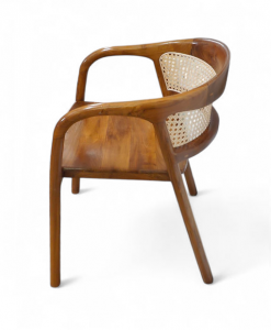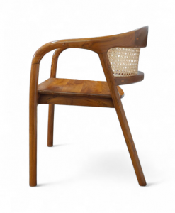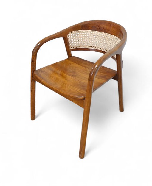 The Camdan Teak Arm Chair combines comfort and style with its gracefully curved back and rattan detailing.