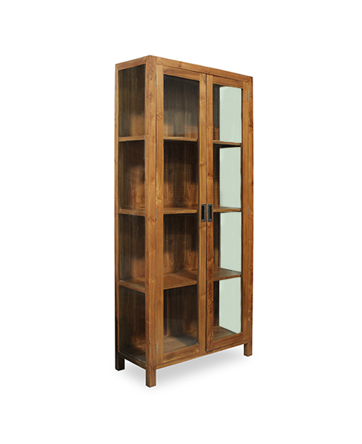It serves as an additional storage space and a display cabinet with its glass panels at the same time.