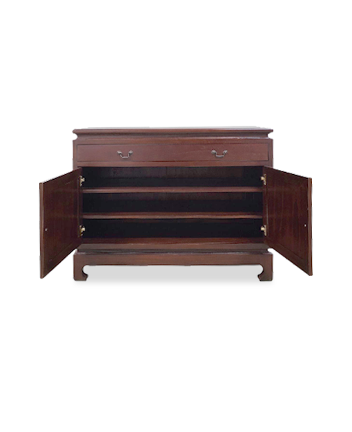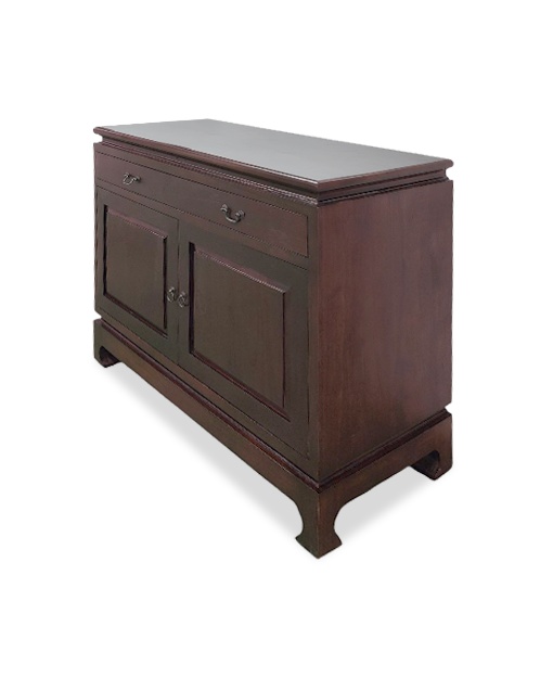 Made from solid teak, this classic piece features 2 spacious drawers on top and 2 roomy doors below, providing ample storage for dining essentials, décor, or everyday items.