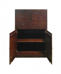 It features 1 long tray drawer, 2 small drawers, 1 long drawer, and 2 doors, providing organized storage for offerings, ritual items, or personal keepsakes.