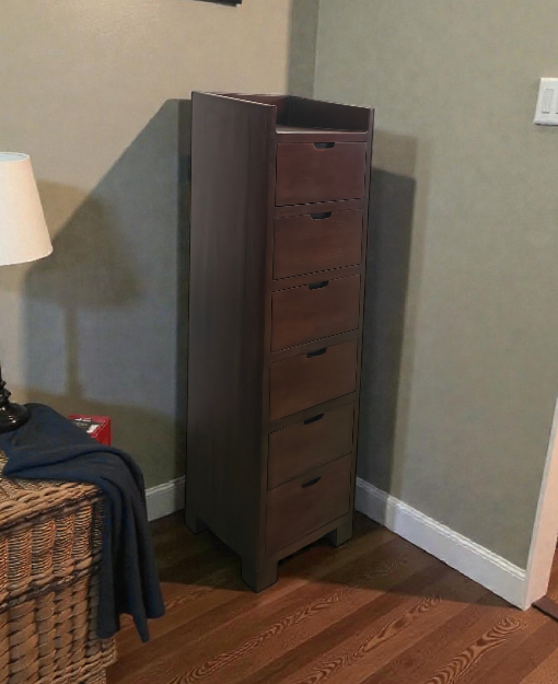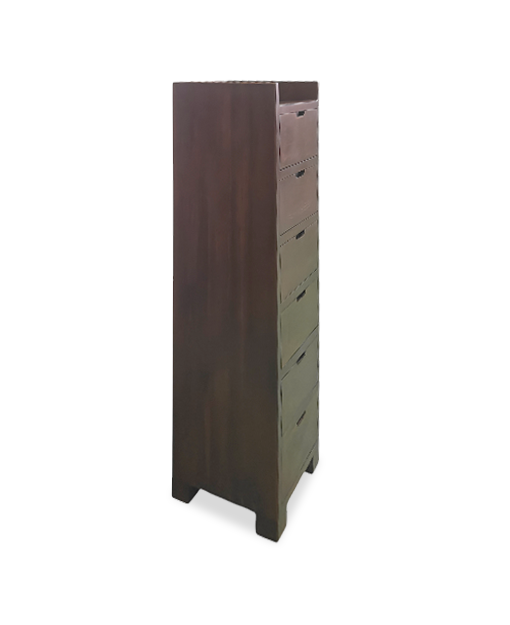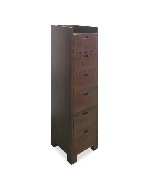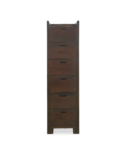 The Gabriell Teak Chest of Drawers is crafted from solid teak wood and designed for vertical storage with a clean, timeless silhouette. Featuring six spacious drawers, this tall chest offers ample organization while maintaining a slim footprint—ideal for bedrooms with limited space.