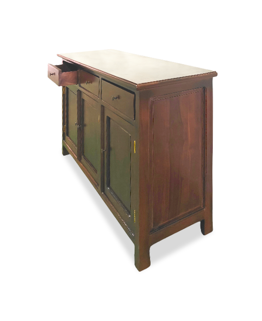 The Jamieson Teak Sideboard is a timeless storage solution crafted from solid teak wood. Featuring three drawers and three doors at the bottom, it offers ample space to organize dining essentials, linens, or everyday items.