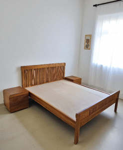 Give your bed room a cozy and chic look with the warmth of this teak wood bed.