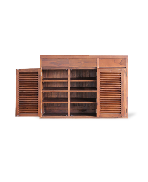 With a streamlined silhouette, this Noreen teak shoe cabinet is the perfect fit for any timeless entryways.
