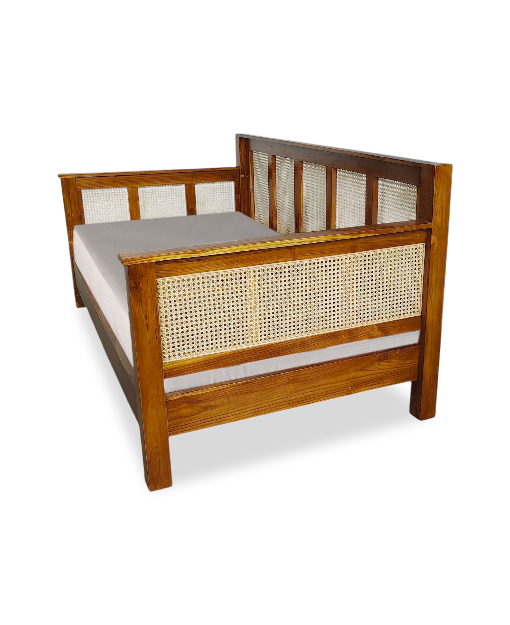 Embrace timeless elegance with our solid teak wood daybed, featuring a rattan design in single and super single sizes.