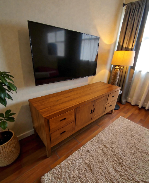 Simple and classic, this Vencent Teak TV Console is also practical and functional.
