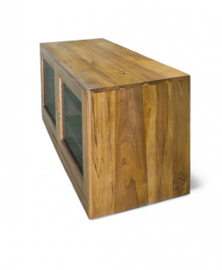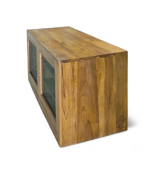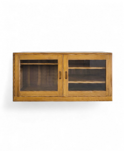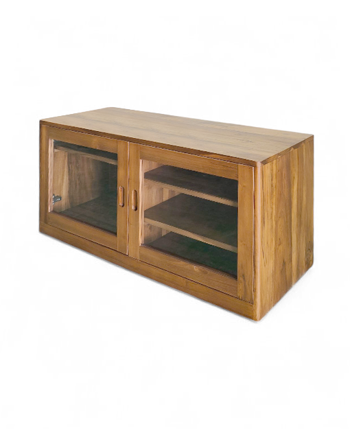 Yorick Teak Glass Cabinet features two glass doors with fixed-height shelving.